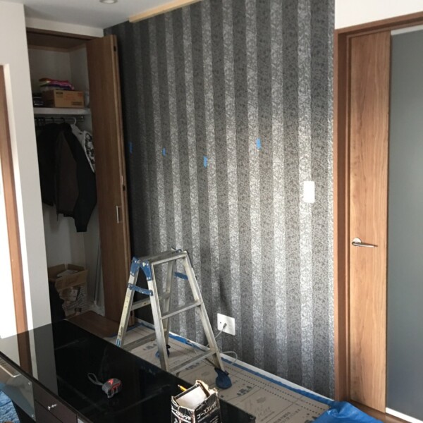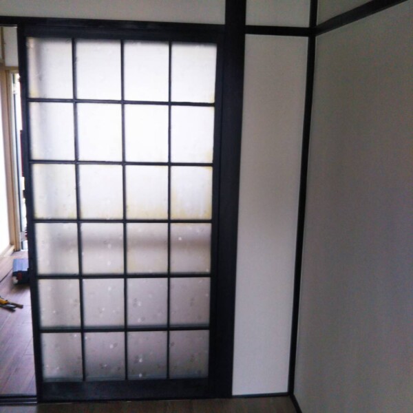 T.O.様宅 和室から洋間に。 ガラス戸を黒塗装。CF。壁は繊維壁を塗装施工