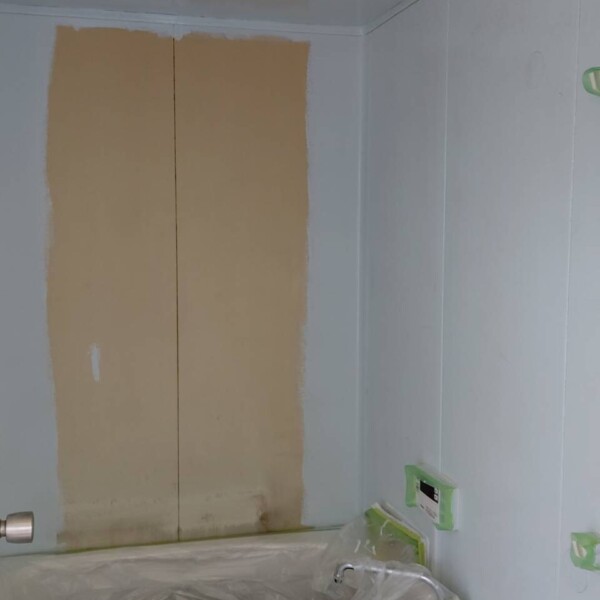 A.W.様宅 ユニットバスの壁、天井の塗装。アクセントに高級感を出すダイノックシート風にシール張り