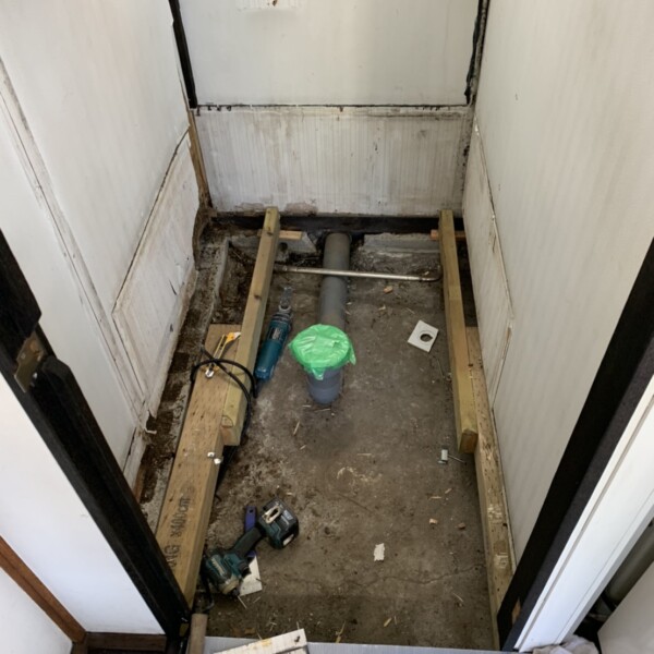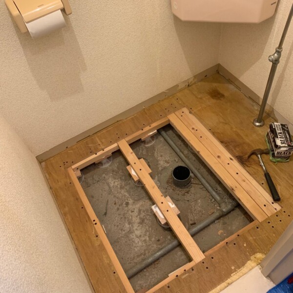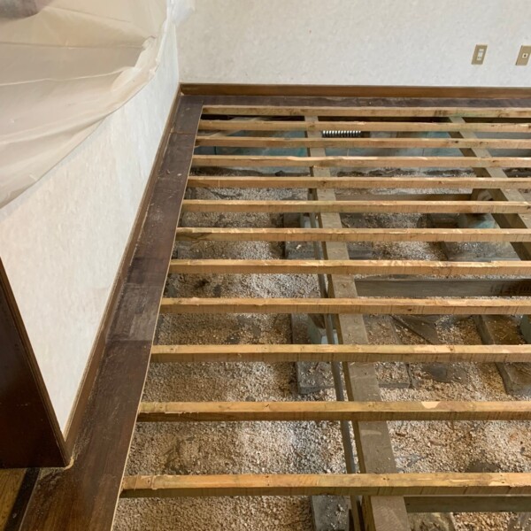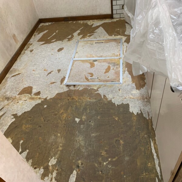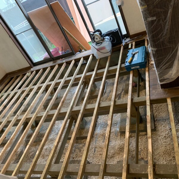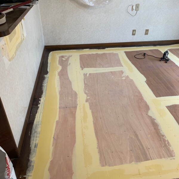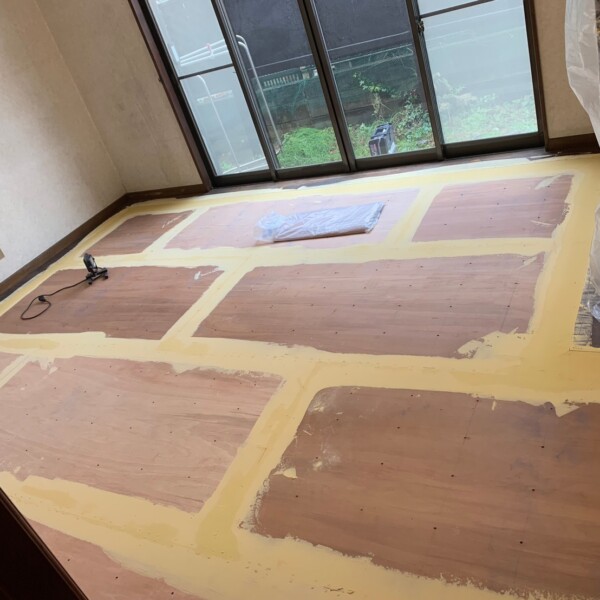 T.K.様宅 床下水漏れのためカビ止め剤塗布、コンパネ貼り替え、フロアタイル貼り工事